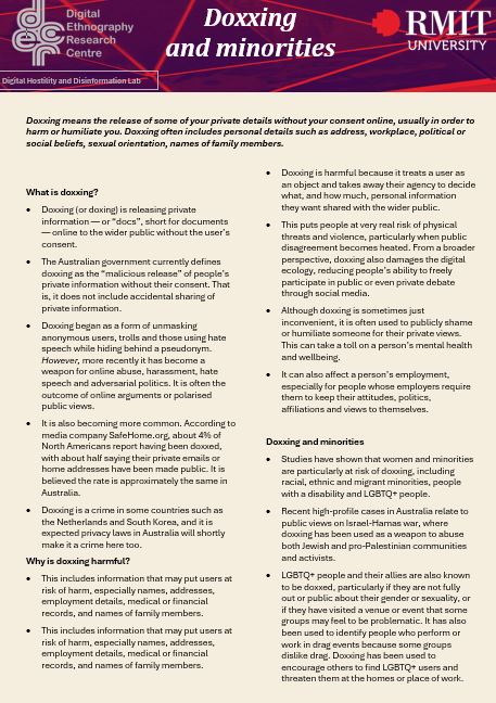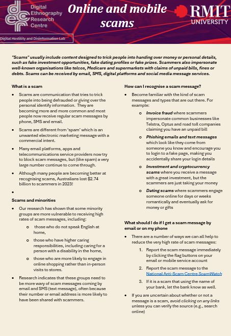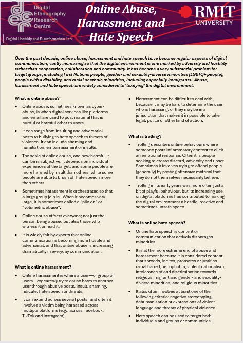 It is increasingly recognised that members of minority communities in Australia are subject to higher rates of digital harms, such as online abuse, harassment, hate speech, scams, and other problematic digital content. This is particularly the case for those who have emigrated from elsewhere, gender- and sexuality-diverse people, people living with a disability and sometimes also older people.